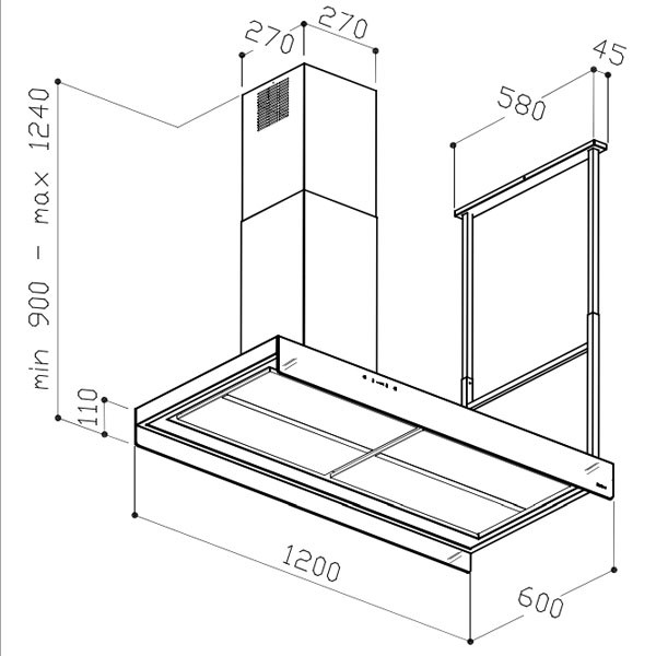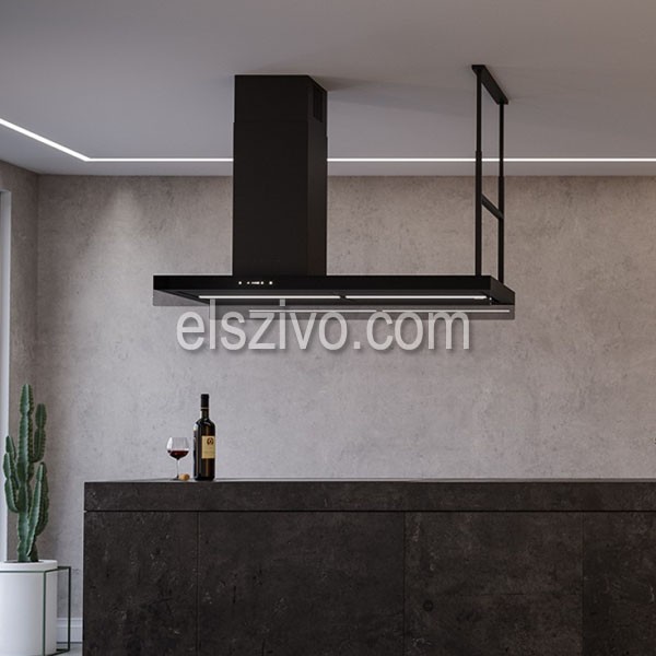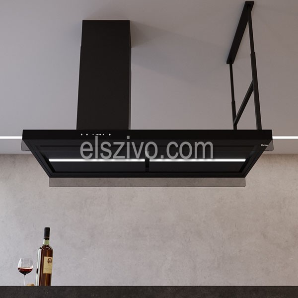 Sirius SILT-36 TW TC NEMESI baloldali fekete sziget design páraelszívó 60x120 cm. Matt fekete burkolat/füst üveg. Maximális elszívó teljesítmény 800 m3/h. Min-maximális zajszint 46-67 (71) dB(A). Érintőszenzoros vezérlés 3+1 fokozatban. Utószellőztető funkció. Anti-drop System. LED világítás. A energiaosztály!