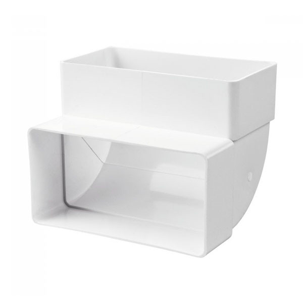 Légtechnikai rendszer kezdő- és végpontja között elhelyezhető 90o-os elem, lapos csatornák derékszögben történő egymáshoz illesztéséhez. A téglalap keresztmetszetű légtechnikai csatornák, illetve a hozzá tartozó idomok alkalmazásával könnyebben elburkolható/elrejthető a rendszer alakítható ki. A vele egyenértékű "hagyományos" kör keresztmetszetű 150 mm-es csőrendszer elemeihez képest kisebb "vastagsági" mérettel rendelkezik, ezáltal szűkebb helyeken (pl. álmennyezet felett, födémgerendák mögött) is elhelyezhető hasznos keresztmetszet csökkenés (szűkítés) nélkül. A légtechnikai rendszerben alkalmazott szűkítések nagyobb nyomásveszteséget és magasabb légáramlásból eredő zajt eredményezhetnek. Amennyiben a telepíteni kívánt eszköz kör keresztmetszetű csatlakozással rendelkezik, szükség lehet az ún. "átalakító" adapterek valamelyikére, melyek természetesen szintén megtalálhatóak a légtechnikai tartozékok között, minden méretkategórián belül. Alkalmazható: légtechnikai készülékeknél (pl. konyhai páraelszívók, ventilátorok és egyéb légtechnikai eszközöknél.) leggyakrabban felhasznált, kör keresztmetszetű csatlakozással rendelkező csőrendszer esetén.