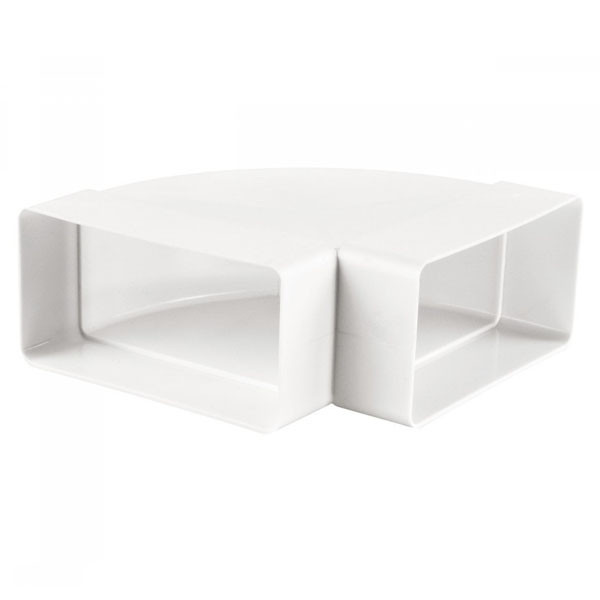 Légtechnikai rendszer kezdő- és végpontja között elhelyezhető 90o-os elem, lapos csatornák derékszögben történő egymáshoz illesztéséhez. A téglalap keresztmetszetű légtechnikai csatornák, illetve a hozzá tartozó idomok alkalmazásával könnyebben elburkolható/elrejthető a rendszer alakítható ki. A vele egyenértékű "hagyományos" kör keresztmetszetű 150 mm-es csőrendszer elemeihez képest kisebb "vastagsági" mérettel rendelkezik, ezáltal szűkebb helyeken (pl. álmennyezet felett, födémgerendák mögött) is elhelyezhető hasznos keresztmetszet csökkenés (szűkítés) nélkül. A légtechnikai rendszerben alkalmazott szűkítések nagyobb nyomásveszteséget és magasabb légáramlásból eredő zajt eredményezhetnek. Amennyiben a telepíteni kívánt eszköz kör keresztmetszetű csatlakozással rendelkezik, szükség lehet az ún. "átalakító" adapterek valamelyikére, melyek természetesen szintén megtalálhatóak a légtechnikai tartozékok között, minden méretkategórián belül. Alkalmazható: légtechnikai készülékeknél (pl. konyhai páraelszívók, ventilátorok és egyéb légtechnikai eszközöknél.) leggyakrabban felhasznált, kör keresztmetszetű csatlakozással rendelkező csőrendszer esetén.